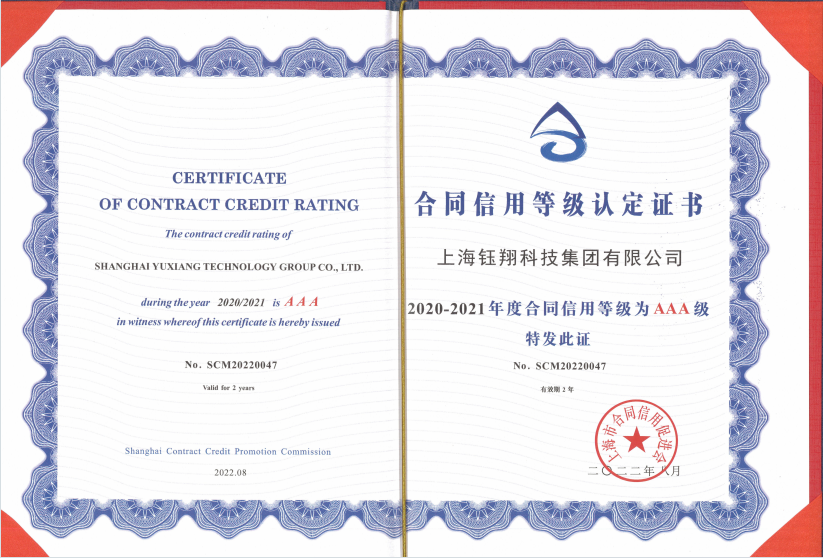 上海鈺翔科技集團有限公司 上海市AAA級守合同重信用企業