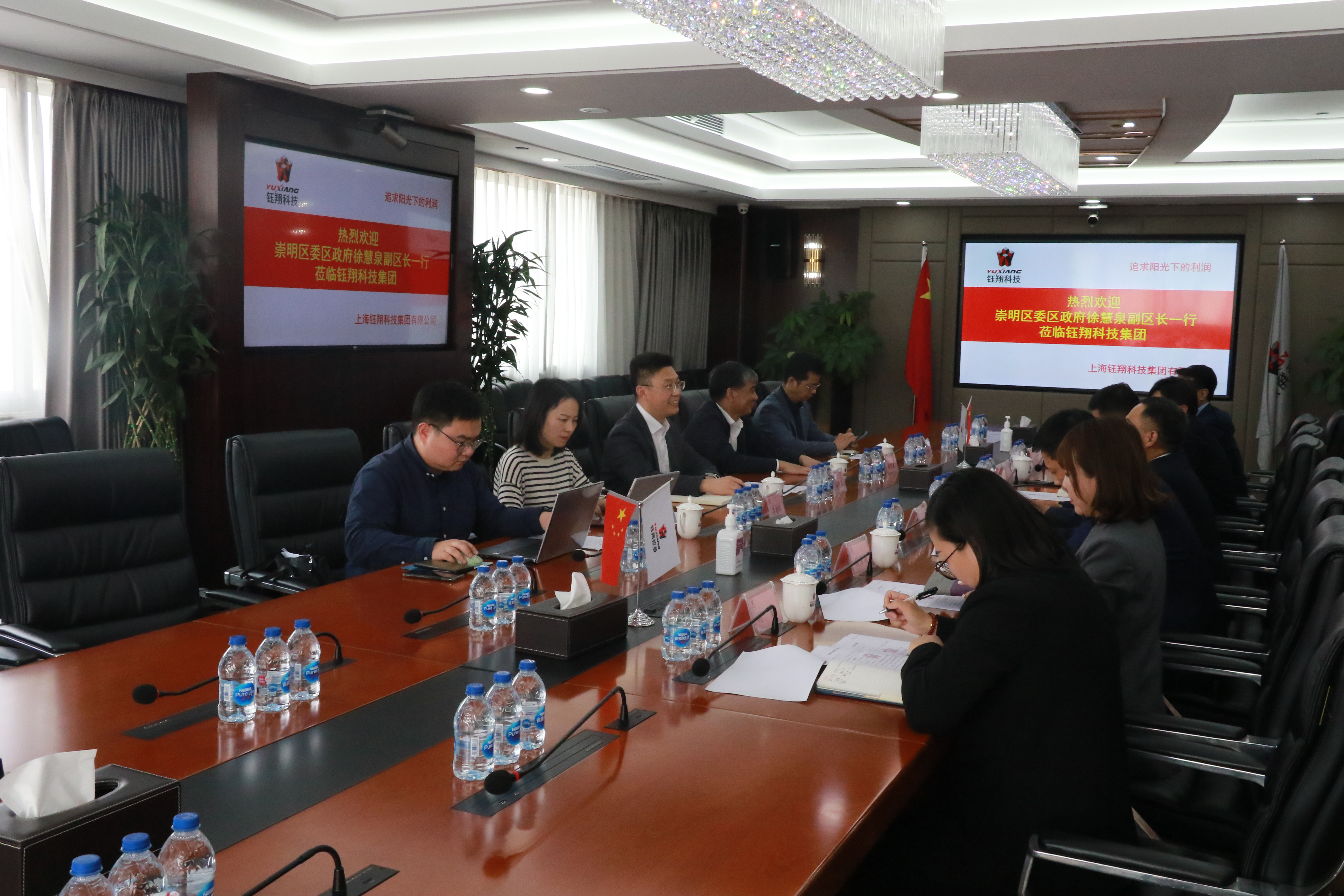 2023年4月26日,上海市崇明區(qū)副區(qū)長徐慧泉,長興企業(yè)集團副總經(jīng)理、上海富盛開發(fā)區(qū)總經(jīng)理郁旦星,區(qū)政府辦公室副主任李官儀,長興企業(yè)集團副總經(jīng)理葛保華到訪鈺翔科技集團。鈺翔科技集團黨支部書記、董事長桂益民,總裁趙旭光,副總裁程衛(wèi)星,董事會秘書韓風雷等領導出席會議。