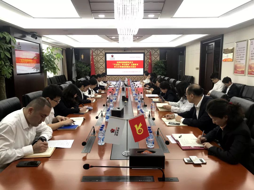 根據崇明區委、富盛經濟開發區黨工委“不忘初心、牢記使命”主題教育總體部署安排,鈺翔控股集團按照“守初心、擔使命、找差距、抓落實”主題教育總要求,把學習教育、調查研究、檢視問題、整改落實貫穿主題教育全過程。11月6日上午,集團黨總支在集團本部召開“不忘初心 牢記使命”主題教育暨檢視整改交流會,集團黨總支全體支委、各小組長及部分黨員參加了交流會。